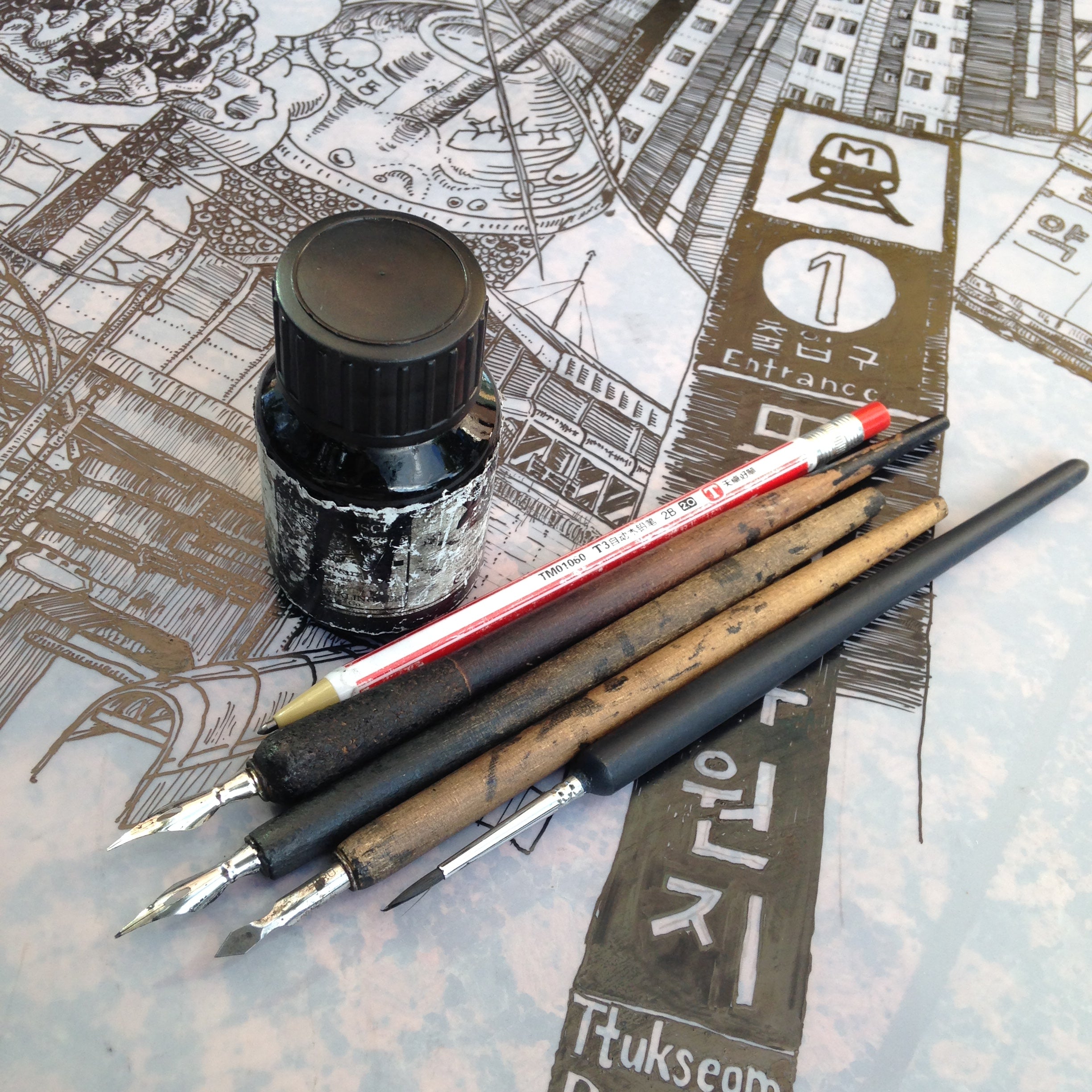 drawn using only ink and fountain pen