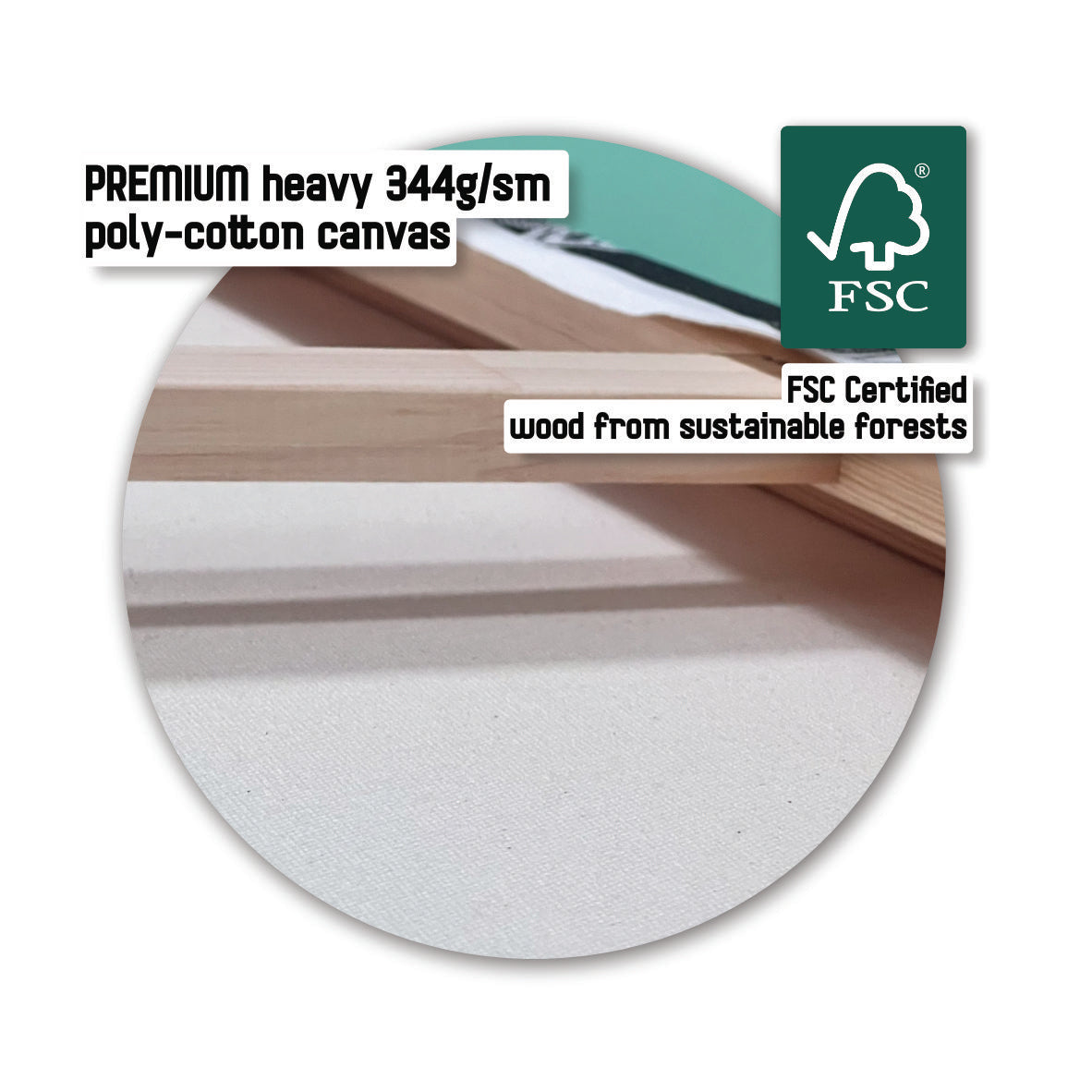 • Hand-stretched on a 3.1 cm deep wooden stretcher frame
