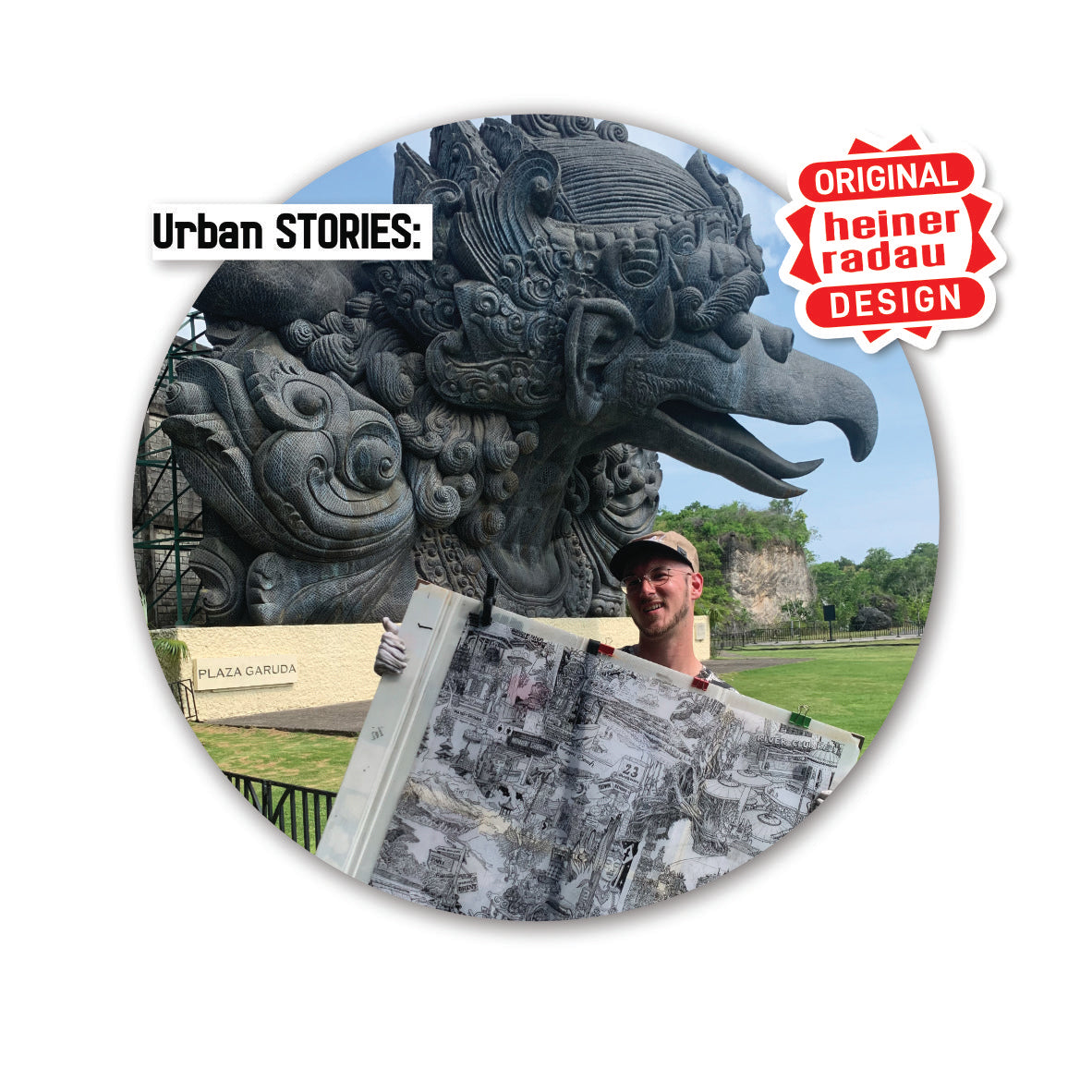My artwork is an original ink drawing of 80x80cm, created live on the streets. Once I return to Germany, I carefully scan and clean the artwork to prepare it for printing.